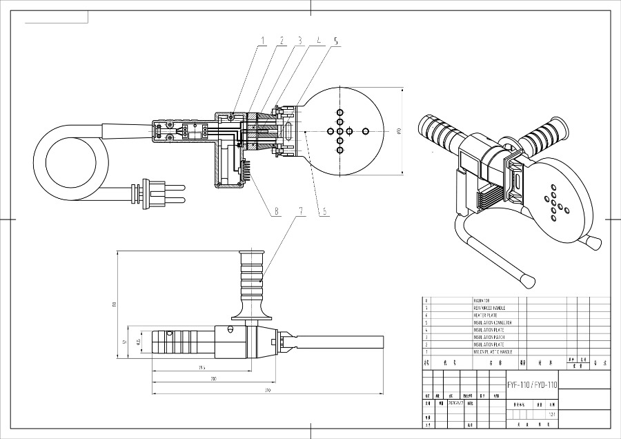 FYF110 220 فولت/110 فولت درجة حرارة ثابتة المقبس لحام الانصهار